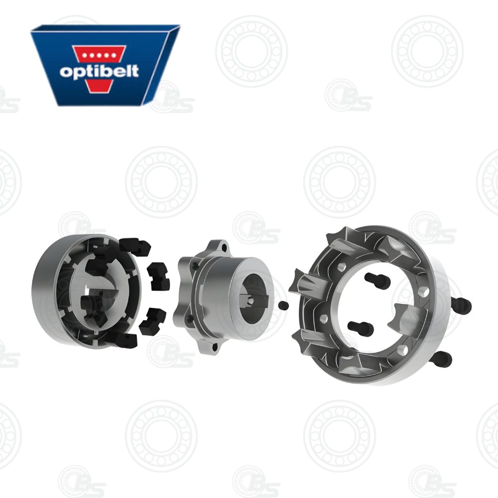 OPTIBELT PEX A 110 COUPLING ยอยยาง คัปปลิ้ง เป็นข้อต่อแบบกรงเล็บ (claw coupling) ที่ประกอบด้วย ชิ้นส่วนยืดหยุ่น ซึ่งทำหน้าที่เชื่อมต่อเพลาทั้งสองเข้าด้วยกันอย่างมีความยืดหยุ่นในเชิงบิด